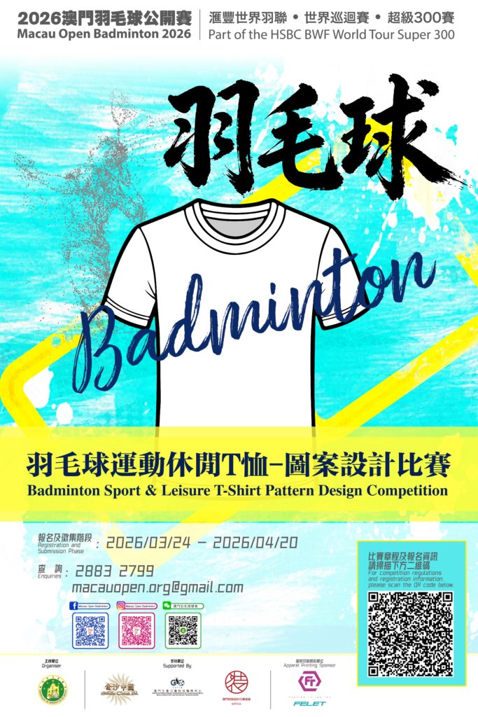 2026澳门羽毛球公开赛·汇丰世界羽联·世界巡回赛·超级300赛——羽毛球运动休闲T恤图案设计比赛