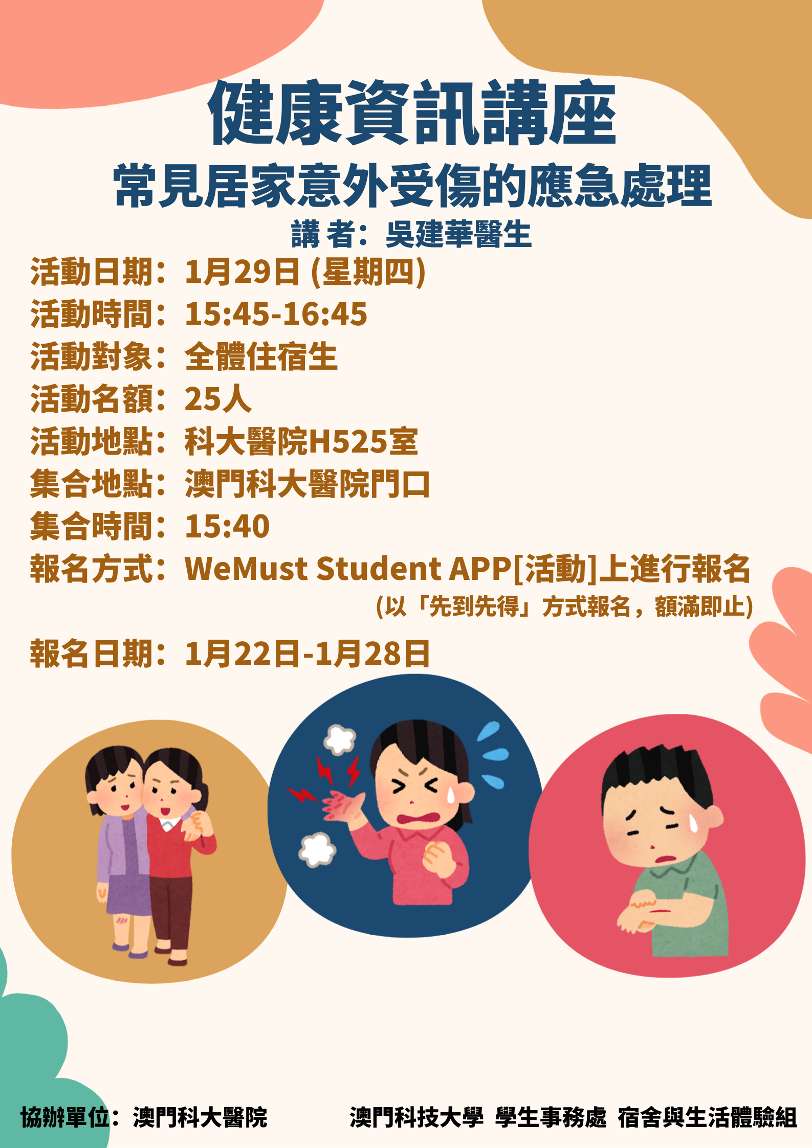 • 健康資訊講座- 常見居家意外受傷的應急處理