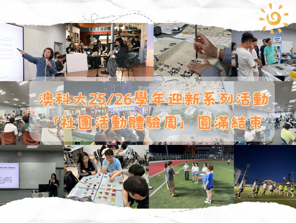 为帮助新生更好地适应和融入大学生活,澳门科技大学学生事务处自8月27日至9月28日举办为期一个月的2025/2026学年系列迎新活动。作为其中重要一环的“学生社团活动体验周2025”于开学首天至9月1...