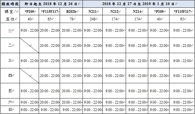 上述課室開放時間如有變更,將另行通告,敬請留意。