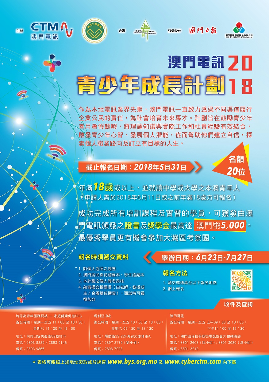 對 象:年滿18歲或以上,並就讀中學或大學之本澳青年人