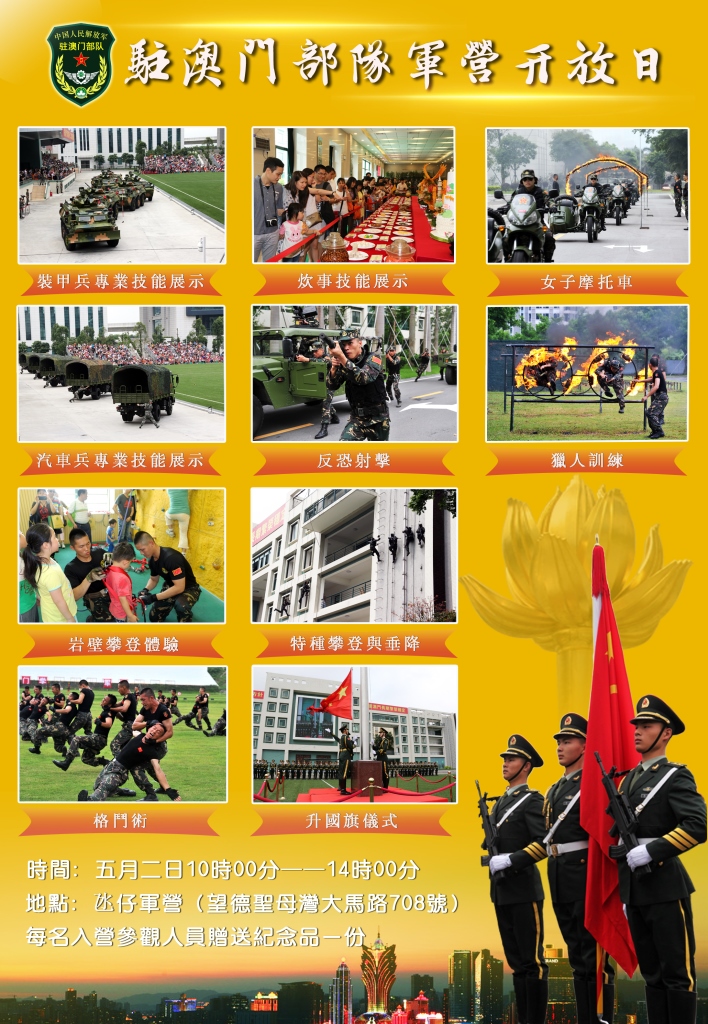 地 點:中國人民解放軍駐澳門部隊氹仔軍營(望德聖母灣大馬路708號)