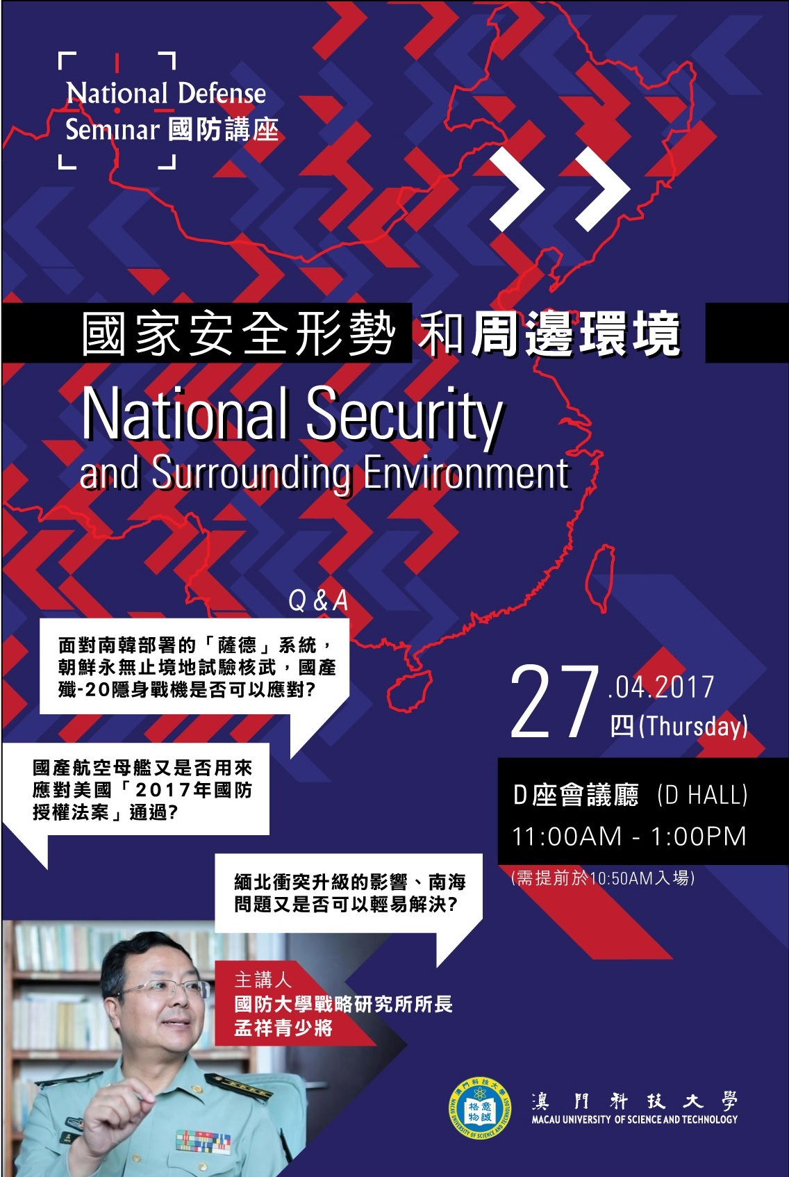 想對國防有更多的了解,歡迎你們參與!是次講座將由國防大學戰略研究所所長孟祥青少將主講。