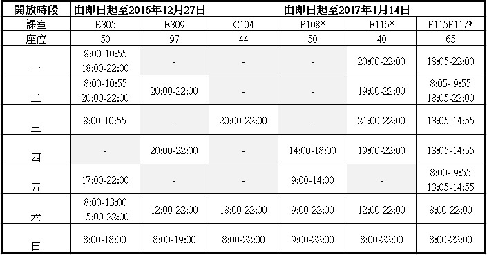 上述課室開放時間如有變更,將另行通告,敬請留意。