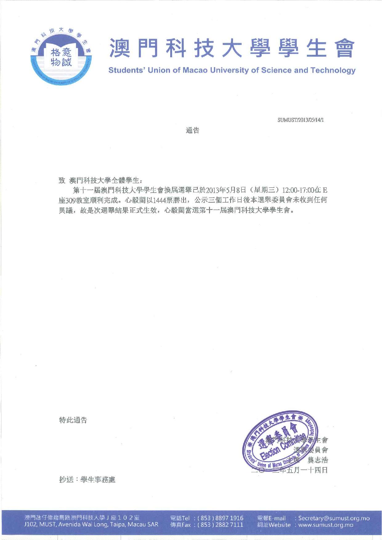 附件:第十一屆學生會正式成立通告