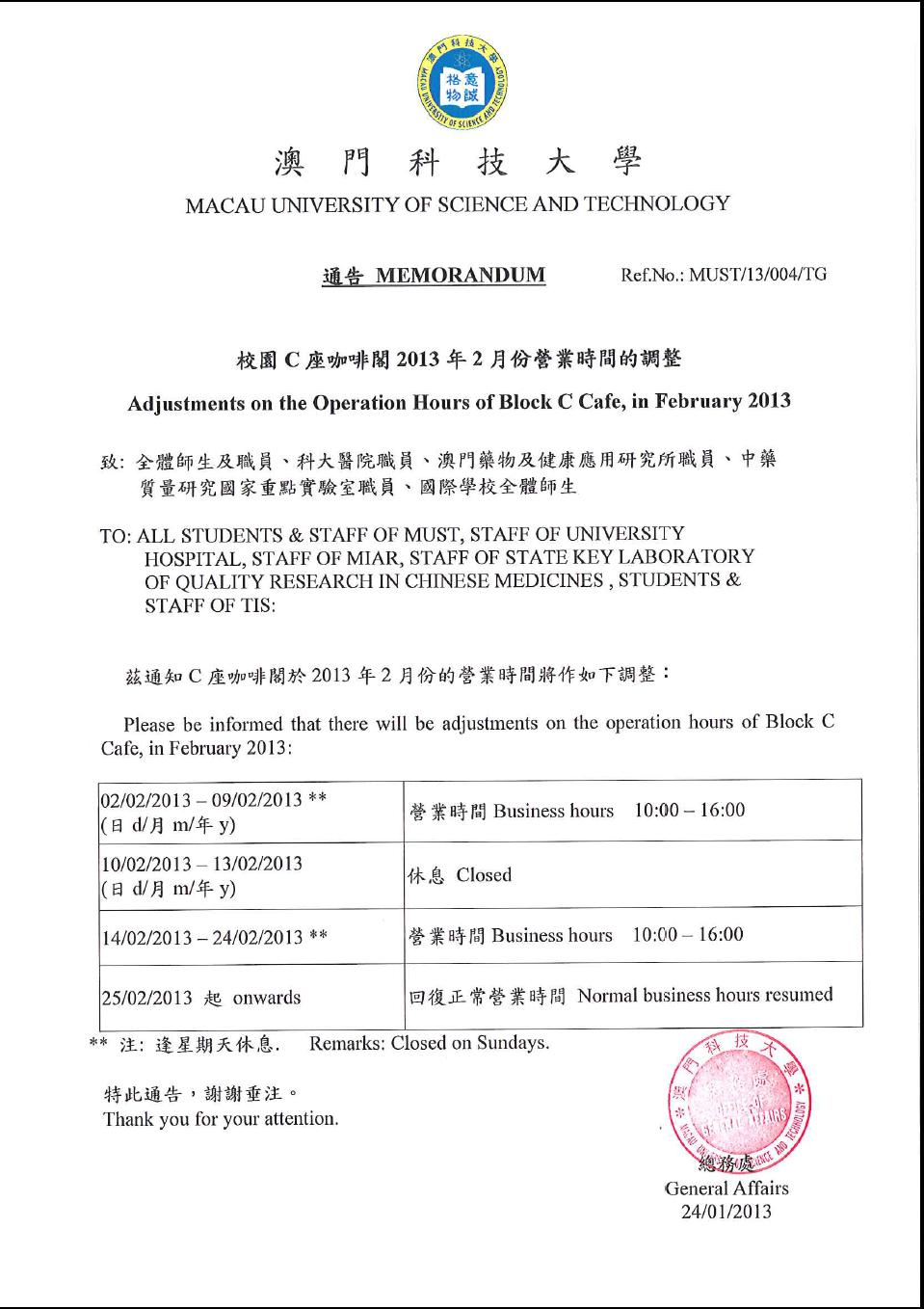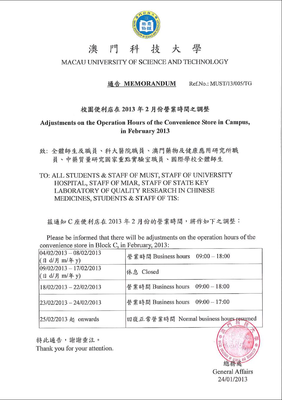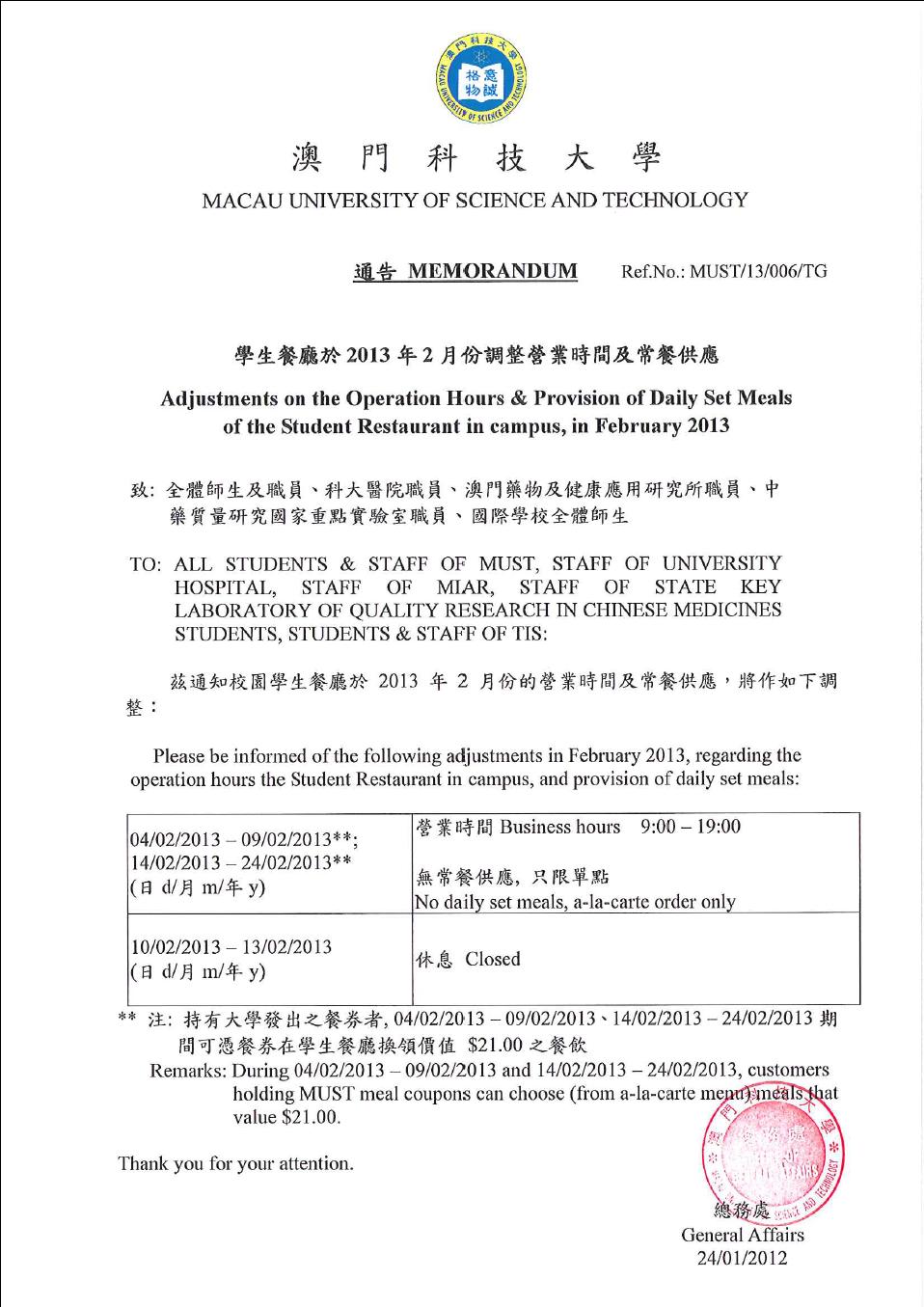 發佈消息:學生餐廳、校園便利店、咖啡閣,在2月份將調整營業時間