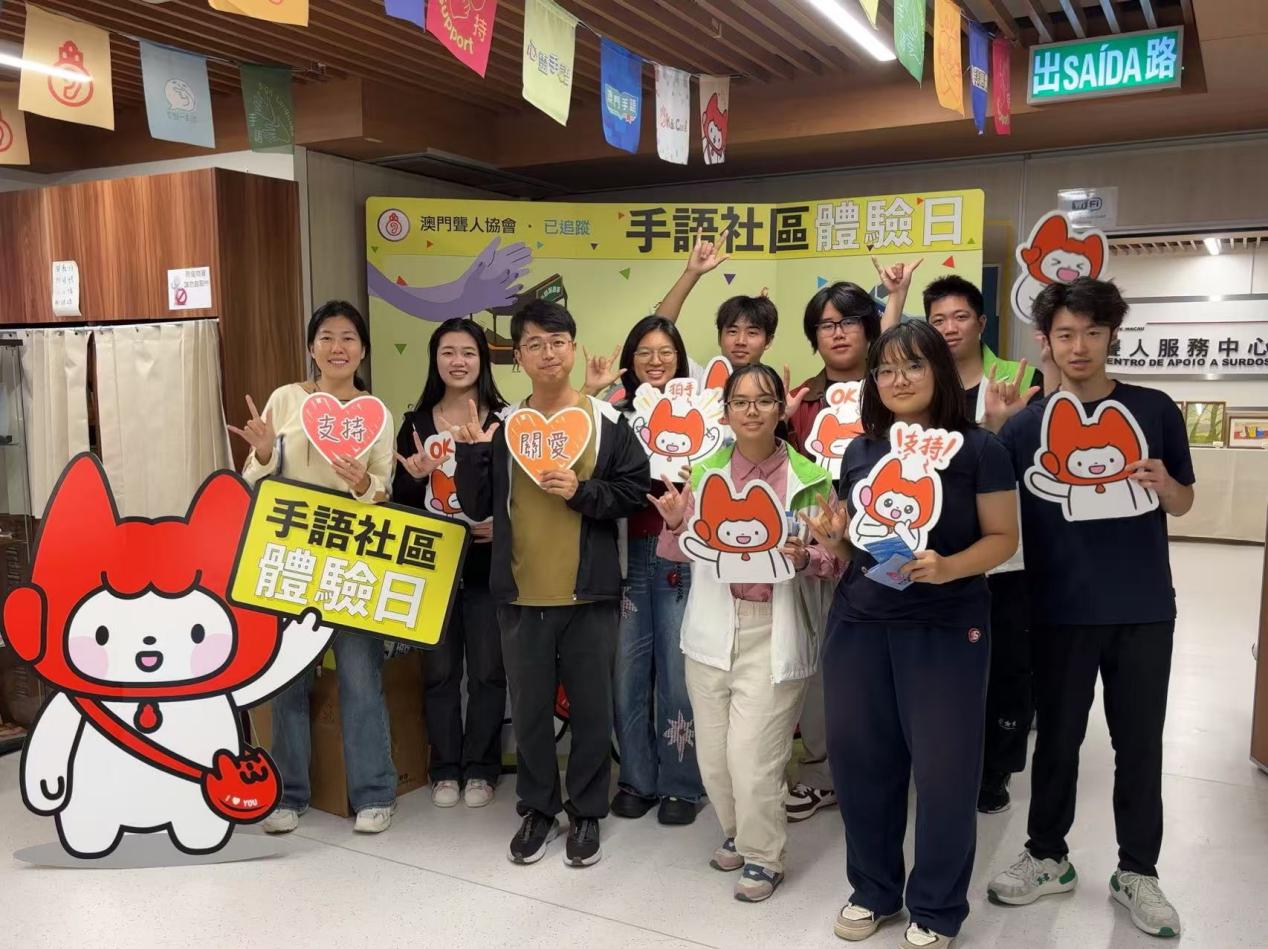 2025年10月25日,澳门科技大学社会服务队与学生会属会的同学前往聋人服务中心,参加由澳门聋人协会举办的「手语小区体验日」活动。此次活动旨在让同学们关注听障群体,了解他们的交流方式,并传递平等共融的价值理念。