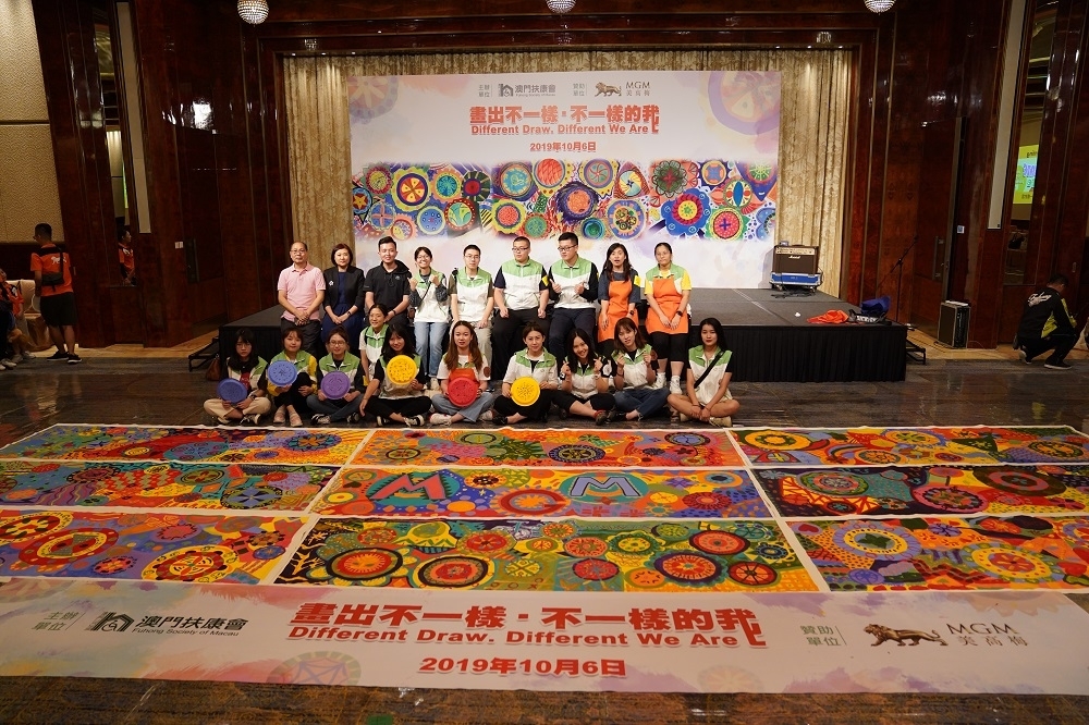 为响应每年10月10日的“世界精神卫生日”,并鼓励身心障碍人士突破自我、积极向上。由澳门扶康会主办的“Different Draw. Different We Are 画出不一样•不一样的我”活动,于2019年10月6日在澳门美高梅宴会厅举行。澳门科技大学社会服务队在学生事务处谭洁玲助理行政主任带领下,一行15名队员积极参与当中。