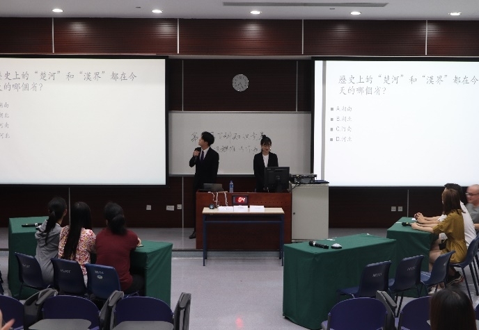 比賽開始前由文雋社顧鑫灝會長致辭,感謝學校的大力支持與各位選手的積極參與,希望大家能在此次活動中發揮出自己的實力,取得優秀名次。隨即進行抽籤決定比賽順序,8支隊伍以積分賽形式,通過搶答題及必答題環節,經過三輪激烈角逐後,最終產生了冠亞季軍,分別是由黃宣語、張明皓、榮偌瑤組成的“巴啦啦小魔仙隊”,由房政楊、洪舒揚、姜卓凡組成的“奇偶紗布隊”,以及李璟寅、胡志翔、李雨牧組成的“大燈泡隊”。