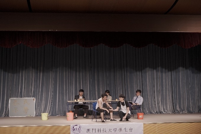 由澳门科技大学学生会主办,澳门科技大学学生会话剧社承办的春季限定大剧《馿得水》于2019年4月26日19时在澳科大D座会议厅成功举办。演出邀请学生事务处代表杨旖琪小姐、澳门城市大学学生会风来话剧社王艺社长、以及澳门科技大学学生会话剧社往届社长出席观看。