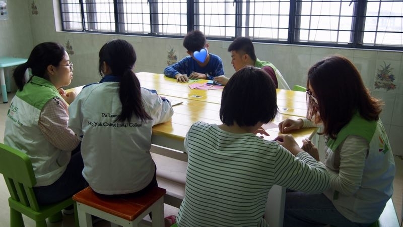 主教山兒童中心是澳門明愛轄下的復康院舍,服務對象為十五歲以下乏人照顧的中度或以上智障或肢體殘障兒童。探訪當天,隊員利用自備的手作材料,七巧板、彩色棉球、星星紙等,以小組形式和小朋友們一起做小手作。當遇到一些表達和理解能力欠佳的小朋友時,隊員們耐心引導、積極鼓勵,經過一小時的製作,小朋友在隊員的陪伴下合力完成小手作。