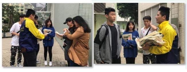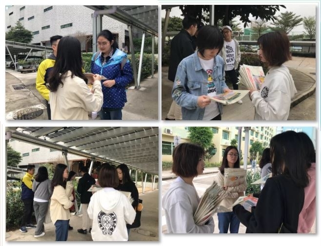 本次校园宣传分四个小组,以摆设摊位及走访校园各区的方式进行宣传(摊位设置于O座教学大楼大堂,走访地点包括O座、N座、A座、B座、C座、E座、F座等)。透过小游戏环节,学生根据随机抽选的物品,联想可能遇到的诈骗或防罪讯息,通过宣讲、提问与解说方式,让大家对常见罪案、骗案的作案手法加深了认识和了解,借此提高大家的防范意识。