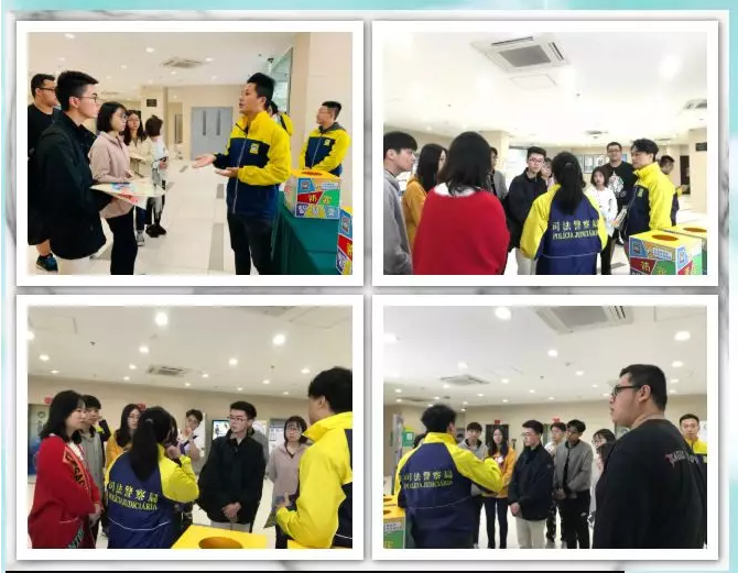花絮:警员与各学生代表组成宣传小组在校园内为同学们示范并讲解如何防范电信诈骗。
