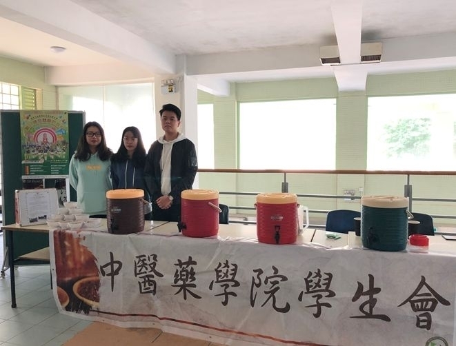 ![]() 中医药学生会于B座的“中医凉茶”义卖摊位 |