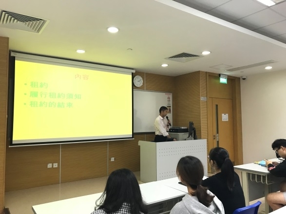 透过是次讲座,为同学们日后在澳门租赁楼宇时提供多方面的资讯,避免一些不必要的纠纷。未来,学生事务处将继续举办各类法律法规专题讲座,希望加强同学们各方面的基础知识。