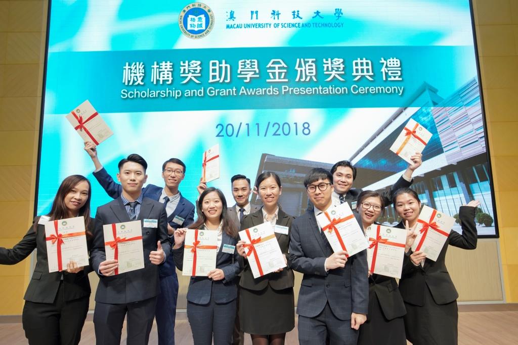 澳门科技大学于2018年11月20日在大学图书馆大楼N101礼堂举行机构奖助学金颁奖典礼。典礼上,23位机构代表向246名优秀学生颁发合共30项奖学金、助学金及飞跃大奖。
