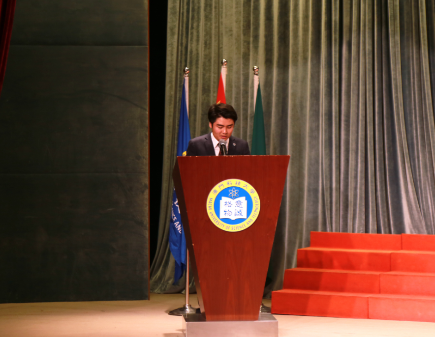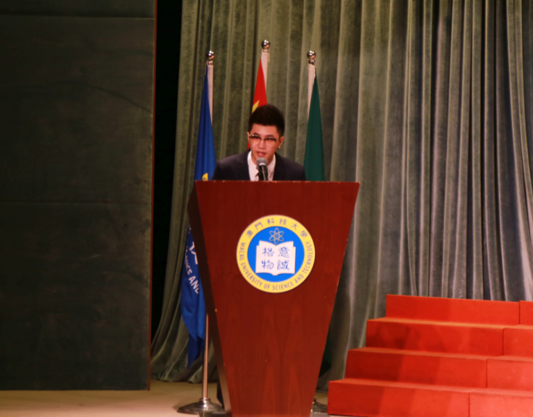 邝应华协理副校长勉励学生会及属会作为全体学生代表的团体,应秉持「意诚格物」之校训,传承 「自强不息、追求卓越」的科大精神,担当连结同学和大学的桥樑纽带角色,弘扬爱国爱澳的精神,强化同学服务社会的理念,推动澳门社会良好发展;学生会成员更应品学兼优做好榜样,履行大公无私的服务承诺,体现务实谦恭的做事作风,落实自我约束和会务监督机制,为澳门科技大学学生会的会务发展与声誉作出应有的贡献。
