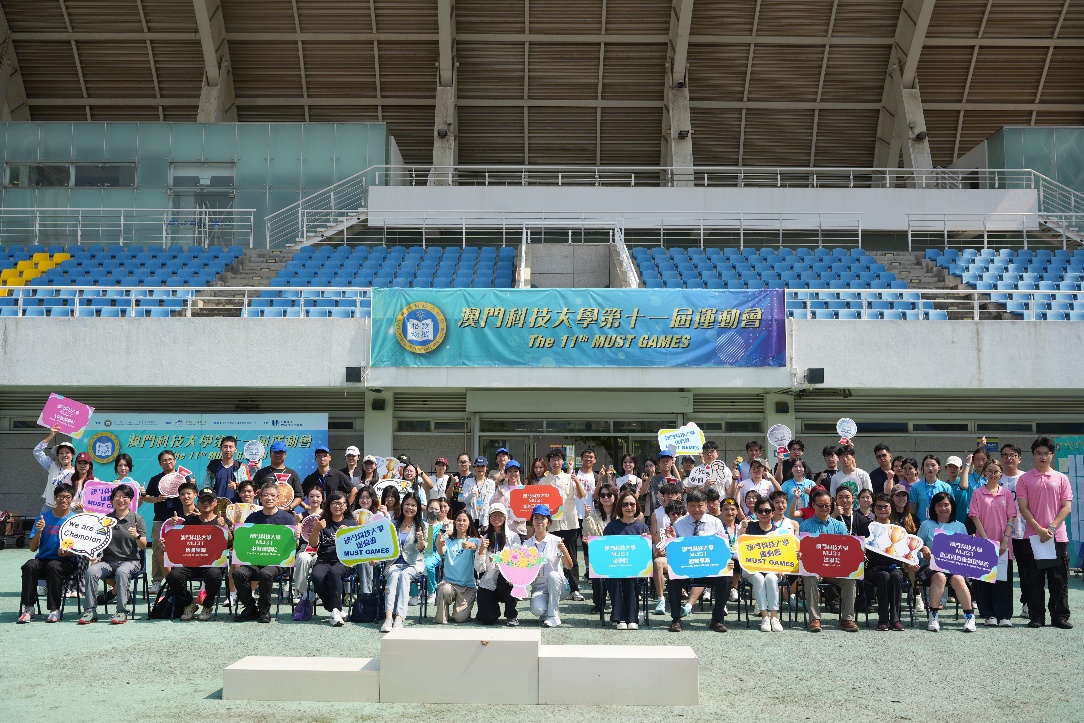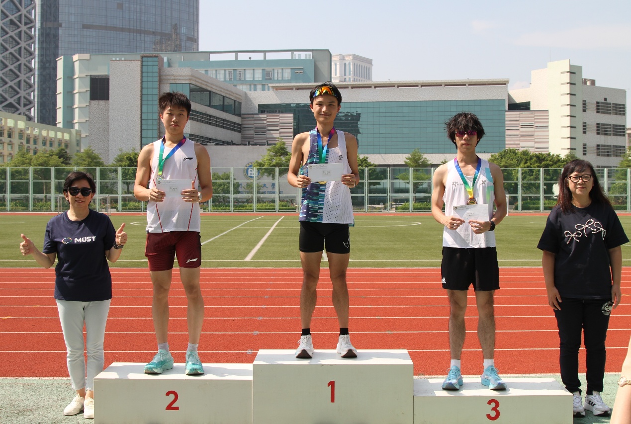 澳门科技大学第十一届运动会决赛及颁奖礼于2025年10月19日在澳科大I座足球/田径运动场圆满举行。本届运动会分两日进行,共设置十项男女子单项径赛,吸引近200名运动员参与,最终诞生30个奬项。决赛当天,澳门科技大学邝应华副校长及梁文慧协理副校长等嘉宾亲临颁奖仪式,为获奖运动员颁发奖项,共同见证同学们的拼搏成果。
