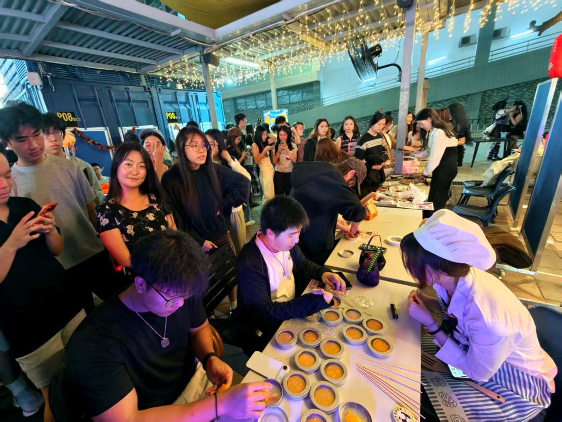與此同時,同學們在造型裝扮上盡顯巧思,除了經典鬼怪形象,更不乏財神爺等創意裝扮,成為活動中一道別具趣味的風景線。園遊會也為學生提供互動交流的平臺,大家紛紛合影留念、積極互動,在輕鬆愉快的氛圍中拓展人際圈。