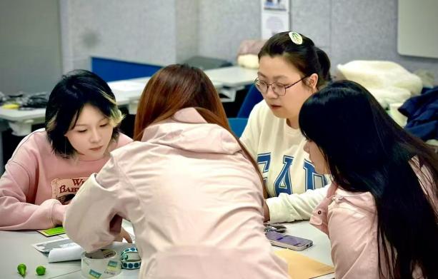 社会服务队和参与同学一起进行盲文刻字和猜水果等活动