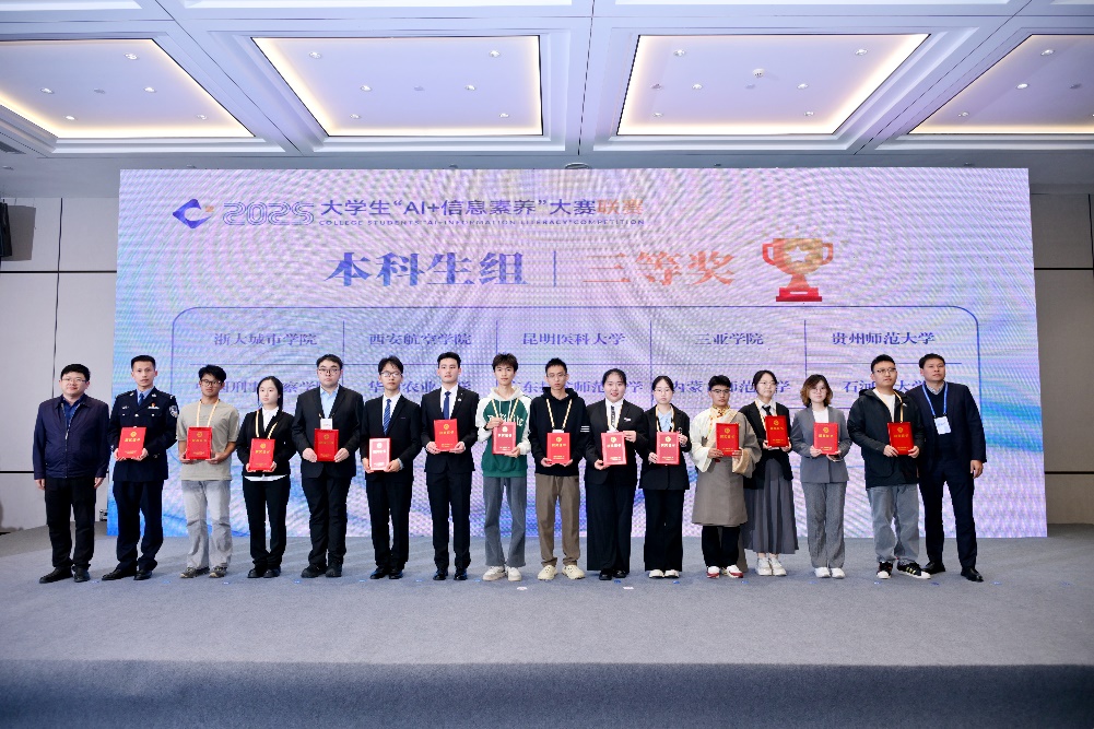 「2025年全國大學生『AI+信息素養』大賽」由教育部高等學校圖書情報工作指導委員會、四川省教育廳及重慶市教育委員會指導,並由各個省、市、自治區圖書情報工作委員會聯合主辦,旨在推動人工智能與信息素養教育的深度融合,提升大學生在AI環境下的信息獲取、分析與應用能力。大賽自2025年5月啟動,共有24個省、自治區、直轄市,以及澳門特別行政區1,243所高校的35.6萬名大學生報名參加。經過多輪選拔,最終73所高校的79支代表隊約450名師生齊聚成都,分為本科生和研究生兩個賽場參加全國聯賽。