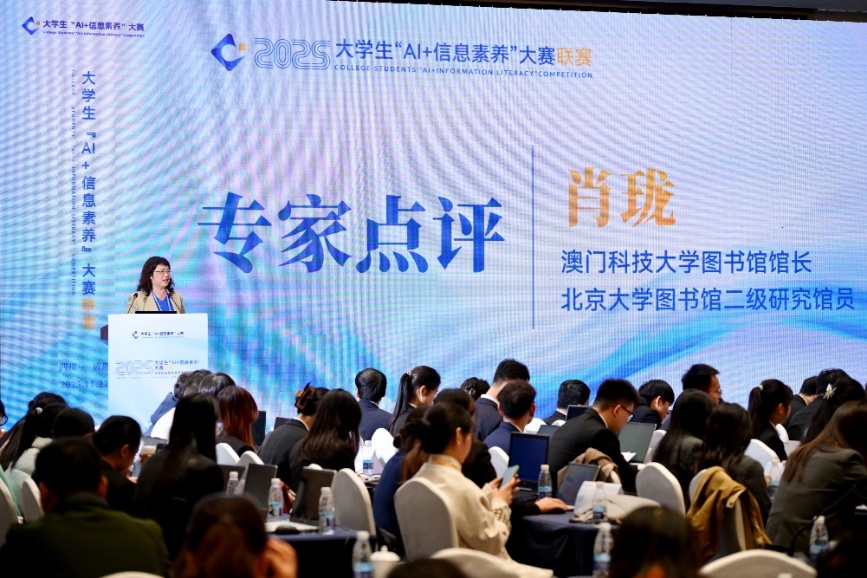 澳门科技大学图书馆馆长肖珑应邀担任大赛评委,并在专家点评环节中强调,AI时代的大学生应加强信息鉴别能力及与人工智能协同的高水平信息素养能力,以提升未来竞争力。澳科大图书馆将持续推动信息素养教育的创新与发展,助力学生迎接人工智能时代的挑战。