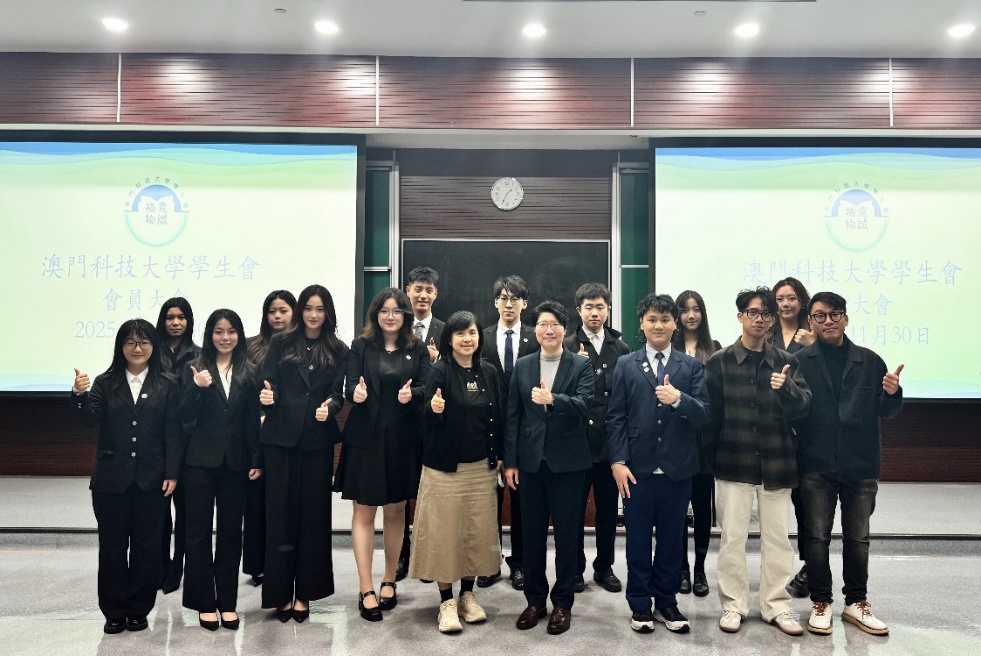 澳门科技大学学生会会员大会于2025年11月30日下午一时在图书馆大楼N211教室隆重举行。本次大会由大学学生事务处、学生会主席团、理事会及监事会成员共同参与;学生事务处黄嘉颖处长、谭洁玲职务主管、凌飞扬导师受邀出席本次大会。为了学生会新一年的组织建设、人事布局以及过去一年的工作总结等核心议题的有序推进,在会员大会主席孙潇珂主持下,会议流程庄重有序,圆满完成各项议程,展现了学生会制度化、规范化的运作水平。