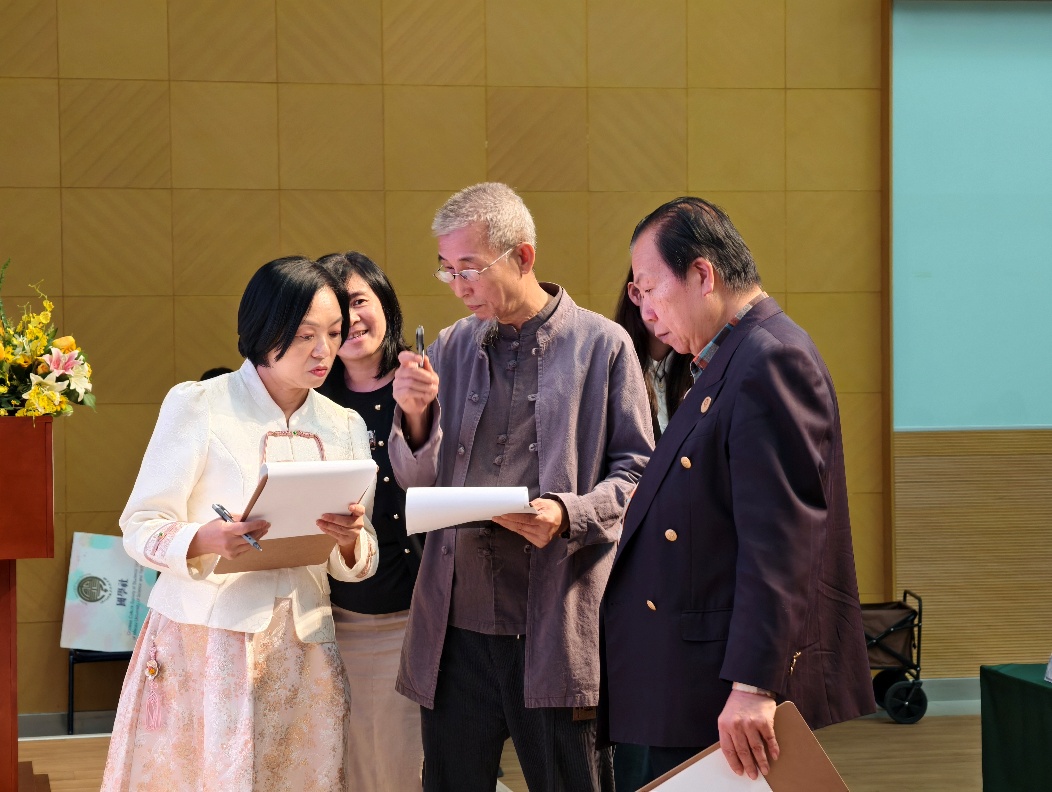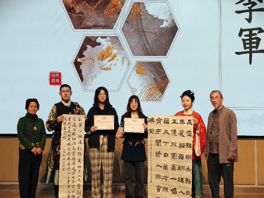 隨後,國學社社長陳蕾之為本次大賽致辭,介紹國學社發展情況,並揭曉大賽決賽主題為「翰墨銘史,精神永傳」與「鋼鐵誓言,筆墨丹心」。繼而,參賽選手投入緊張的現場書寫環節。他們以筆鋒追憶八十載風雨滄桑,用墨香抒寫對歷史的敬畏與對未來的憧憬,在一張張宣紙上凝聚起深沉的家國情懷與昂揚的青春鬥志。