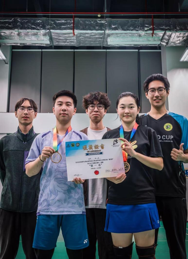 球場之上,競技熱潮迭起,氛圍緊張到令人屏息。澳門科技大學選手們憑藉扎實實力與頑強鬥志,在眾多強手中脫穎而出。法學院周燁與創新工程學院許昕組合在女雙賽場上表現亮眼,面對強敵的輪番挑戰,她們攻防兼備、配合默契,最終一路過關斬將,成功斬獲女雙亞軍,贏得全場掌聲。同樣表現耀眼的還有來自創新工程學院的許昕和田心源,二人携手征戰混雙賽場,發揮極致默契,網前截擊機敏果斷,後場扣殺勢如破竹,面對緊張膠著的比分從不慌亂,憑藉靈活多變的戰術與穩健的心態,在一場場激烈對決中穩紮穩打,最終在三校強手的激烈角逐中脫穎而出,成功摘得混雙冠軍,為澳門科技大學再添光彩。賽場上的每一次得分都伴隨著歡呼與吶喊,每一次逆轉都引發全場沸騰,選手們在競技中突破自我,在對決中收穫成長,完美詮釋了「更快、更高、更強——更團結」的體育精神。