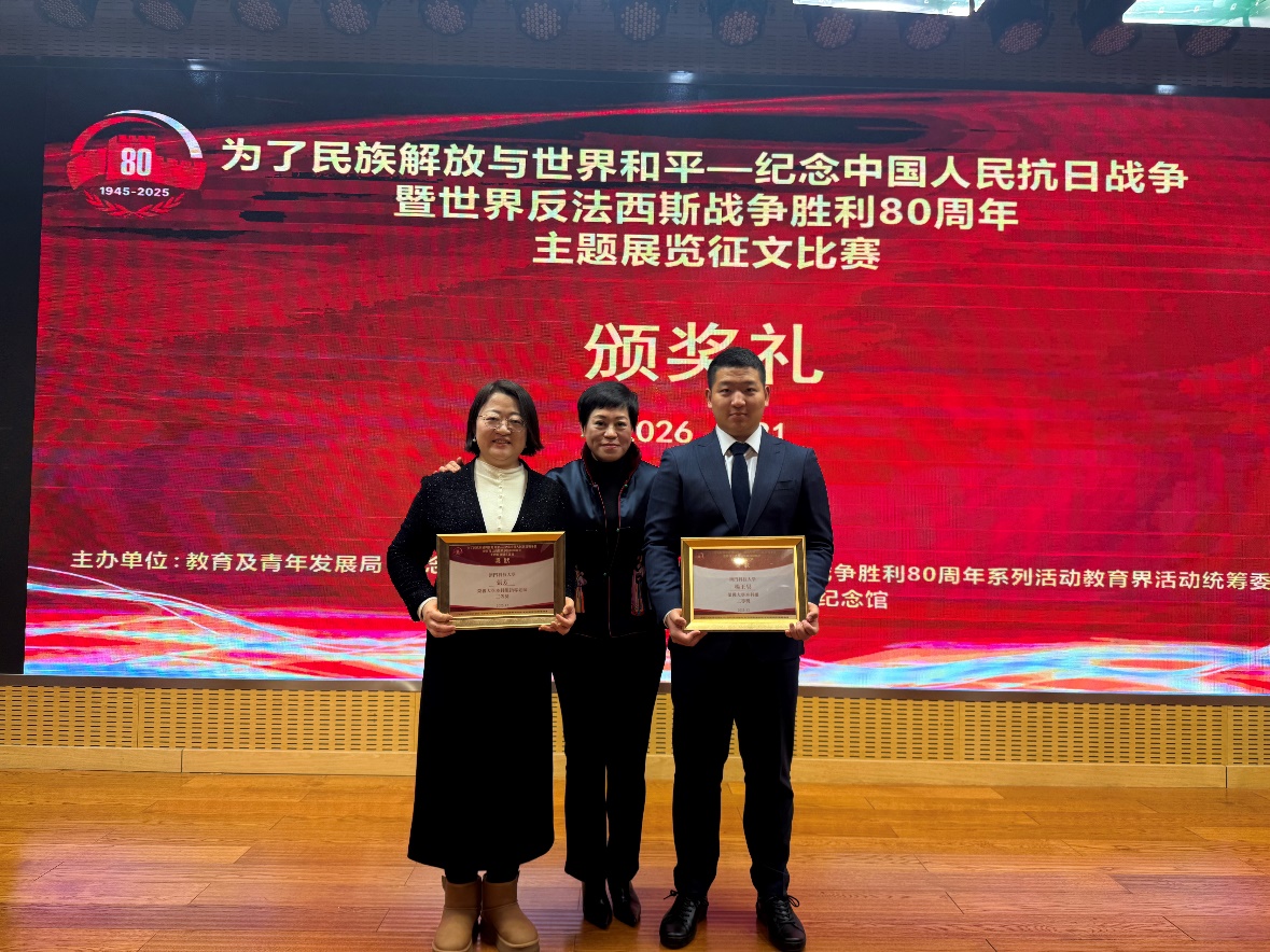 由澳門教育及青年發展局聯合教育界活動籌備委員會主辦的“為了民族解放與世界和平——紀念中國人民抗日戰爭暨世界反法西斯戰爭勝利80周年”主題展覽徵文比賽頒獎典禮及研學活動於1月18日至22日在北京舉行。法學院學生楊王昊憑藉《外公的抗戰紀念章》一文榮獲“大學本科組三等獎”,指導老師國際學院張芳助理教授榮獲“大學本科組指導老師三等獎”,師生二人獲主辦方邀請赴北京參加徵文比賽頒獎禮及為期五天的國情研學教育活動。