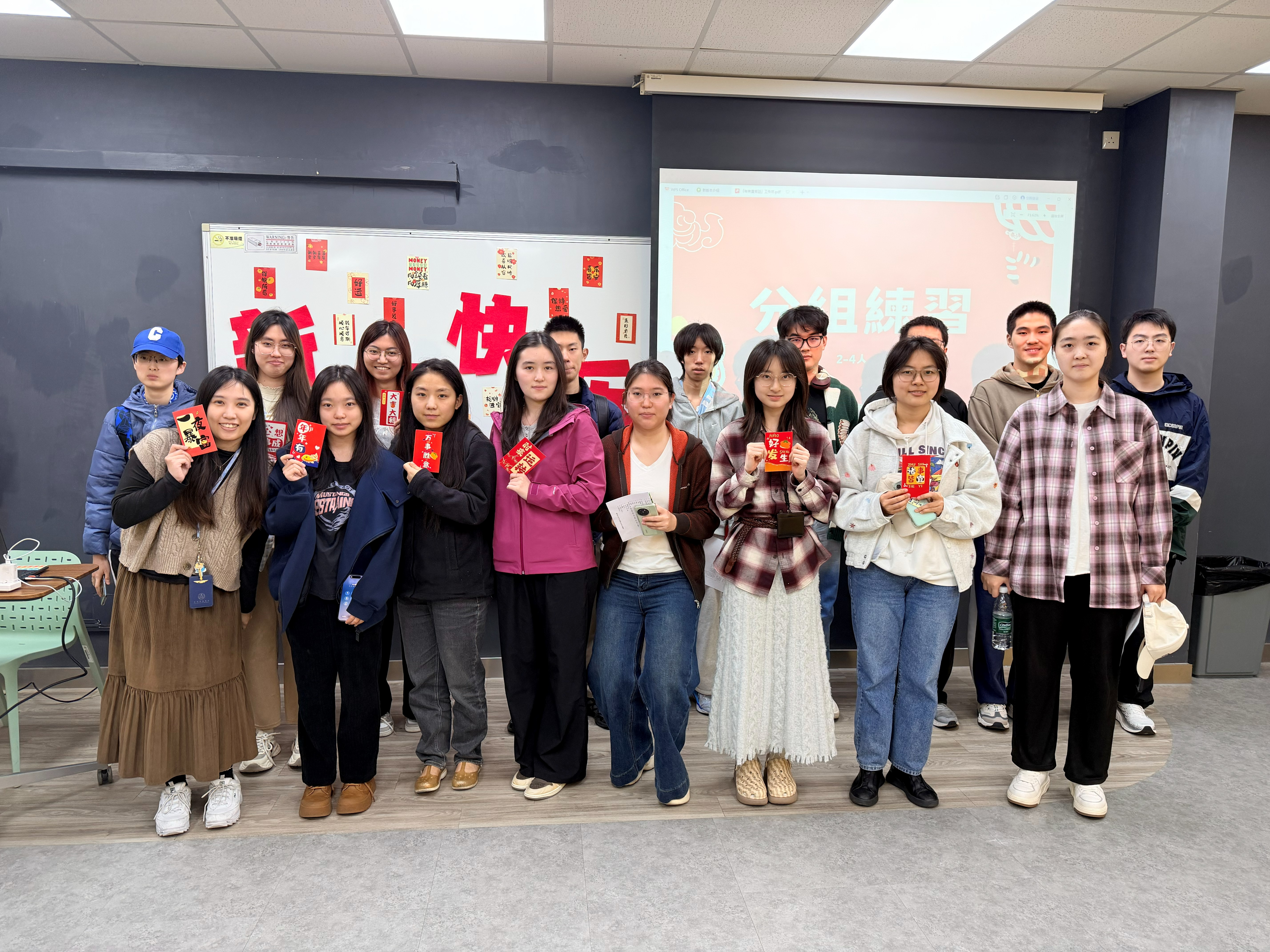 在宿舍与生活体验组职员的带领下,参加工作坊的住宿生不仅学习了常用的新年广东话表达,也进一步认识了广东地区的新春传统美食、习俗及其背后的文化意涵。透过朗诵练习、口语互动及小组协作活动,住宿生们逐步提升了发音的准确性与词语运用能力。活动尾声,学生事务处宿舍与生活体验组向每位参与「年味广东话」工作坊的住宿生赠送了新年贺卡,表达诚挚祝福,愿大家在新的一年里如意吉祥、学业进步。