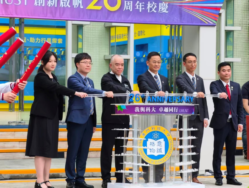 為慶祝澳門科技大學迎來26周年校慶,大學於3月2日下午在行政大樓前舉行校慶啟動儀式。澳科大校長朱健康,副校長唐嘉樂,碩士校友林通,教學傑出獎得獎教師肖玄玄副教授和尤舒翔助理教授,以及學生會主席孫瀟珂擔任主禮嘉賓,大學一眾管理層與師生齊聚一堂,共同見證校慶月正式展開。