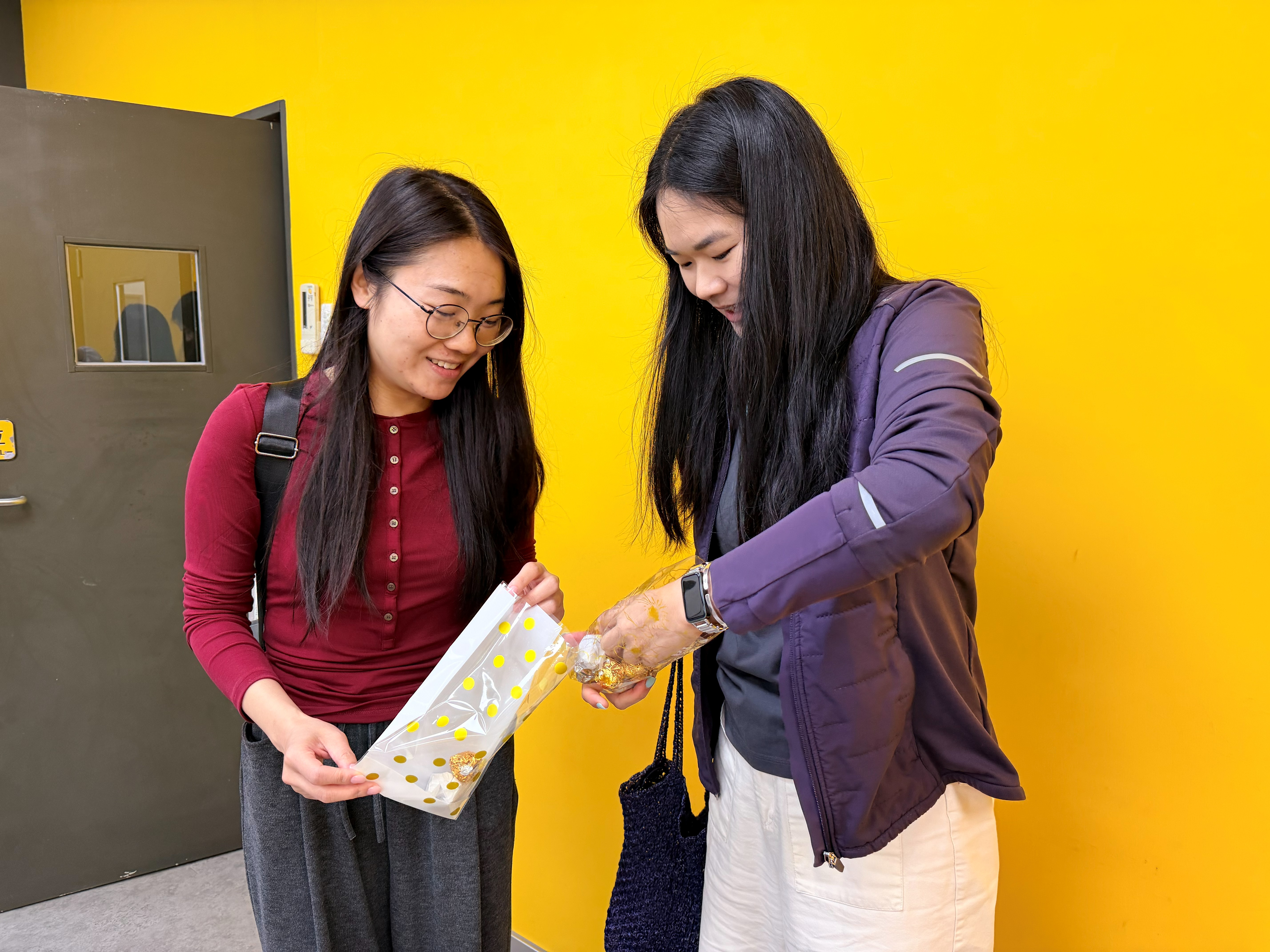 住宿生与好友分享感恩朱古力