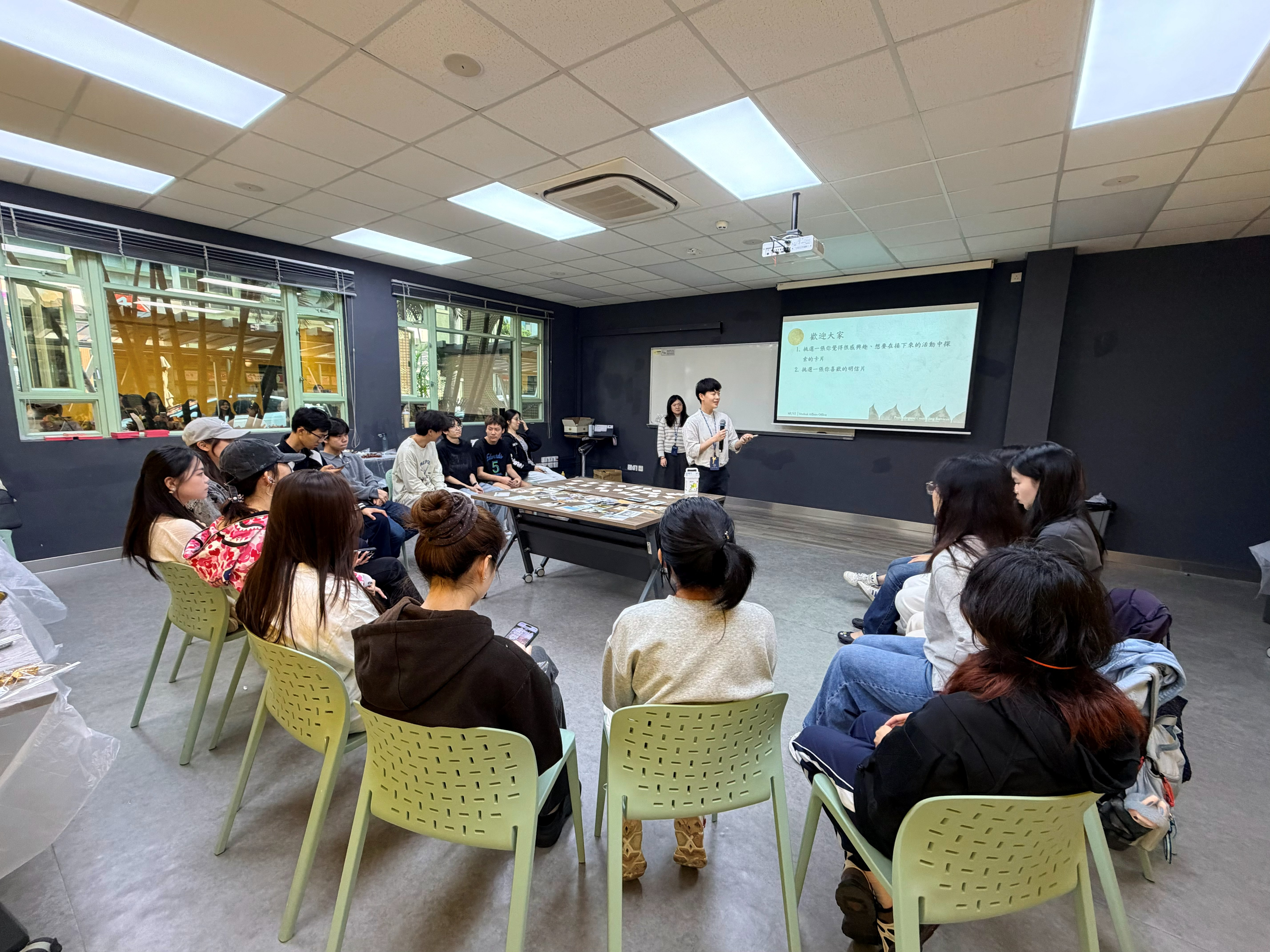 学生事务处宿舍与生活体验组于3月12日及19日举办了两场「情感工作坊」活动,由学生事务处心理咨询与辅导组的心理辅导员带领住宿生进行以「爱与沟通」为主题的互动活动。期望透过活动协助住宿生建立良好的人际关系,提升表达能力与情绪觉察。两场工作坊在温馨愉快的氛围中圆满举办。