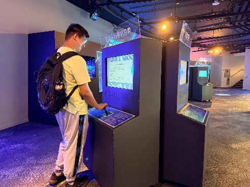 在科学馆展览中心,共设有十四个展览厅,涵盖天文科学、航海科学、智能科技、数据科学、可持续发展及中国科学家精神等主题。住宿生逐一探索各展厅,透过不同的互动设备、游戏、展品及多媒体展示,体验人工智能在不同范畴中的过去、发展与应用。同时,展览亦呈现了中国科学家对国家的贡献,让住宿生更深入地认识当代社会科学的发展与进步。