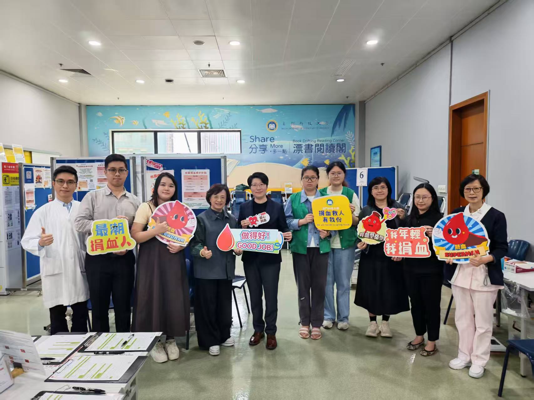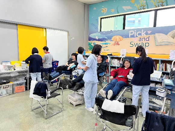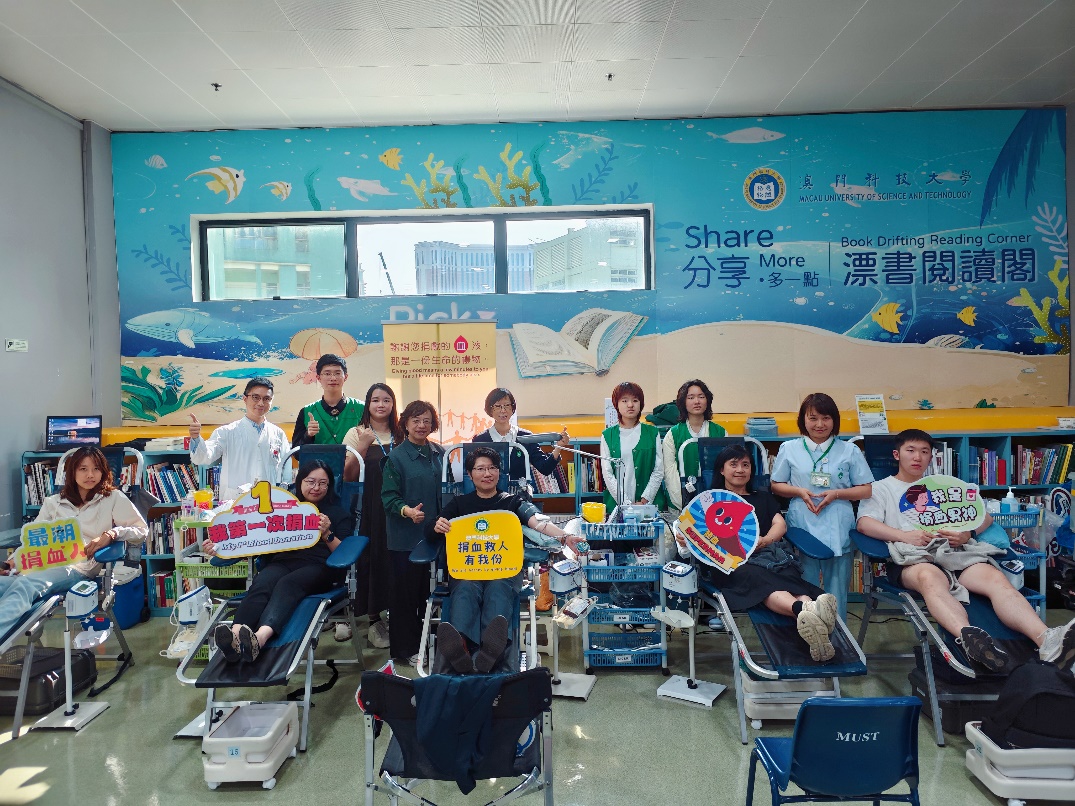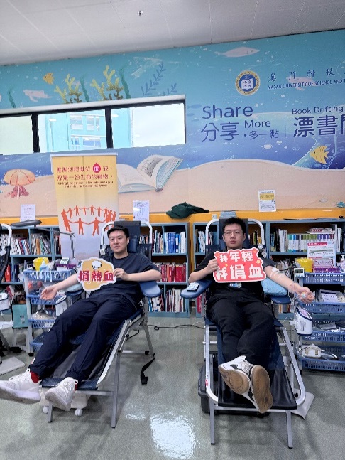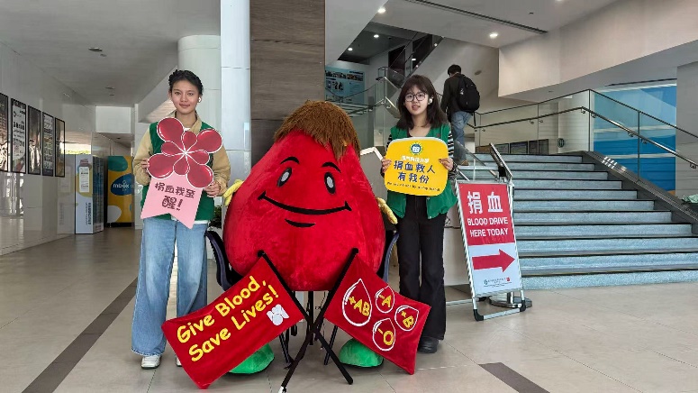 Campus Blood Donation, co-organized by the Student Affairs Office and the Macau Blood Transfusion Centre, hosted by the Volunteer Association, and co-hosted by the Students' Union, Badminton Club, Football Club, Kendo Club, and Social Service Team, was held from March 18 to 20, 2026, at the Book Drifting Reading Corner in Block N. Over the three-day blood donation event, a total of 67 students successfully donated blood.