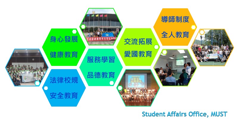學生事務處關注學生的全面發展和福祉。為培養學生道德品格和責任心,創新和團隊合作精神,擁有身心健康並具有抱負與使命而設立多項全人教育項目。學生事務處提倡全方位學習的理念,鼓勵學生自主學習和主動學習,日常提供豐富多樣的學生活動和課外活動經歷,引領和支持學生社團健康發展。營運學生宿舍為學生提供安全和諧的住宿生活體驗;建構校園社會支援網路,提供心理諮詢與輔導服務。學生事務處推出「導師制度」、獎學金和獎勵計劃和各項福利項目為學生提升學習效果提供幫助。